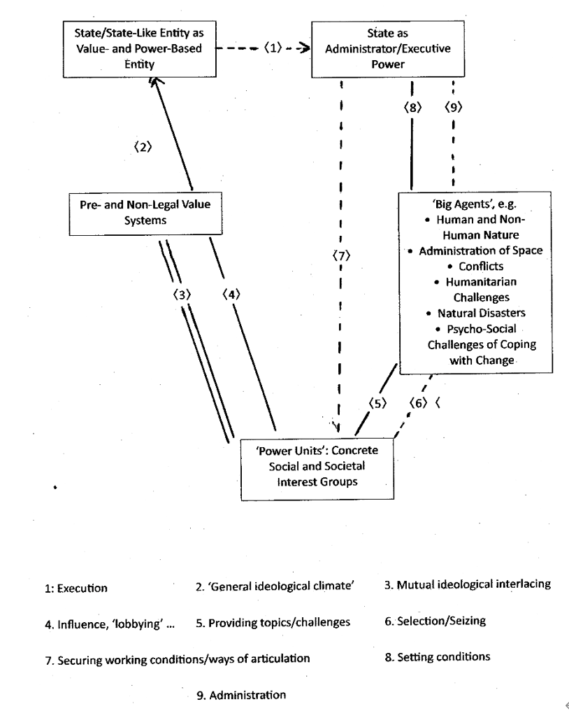 ——這個(gè)簡(jiǎn)短的引入是為了顯示法學(xué)的一個(gè)主要問(wèn)題,即其處于一個(gè)張力場(chǎng)中,可以粗略地表示如下:
