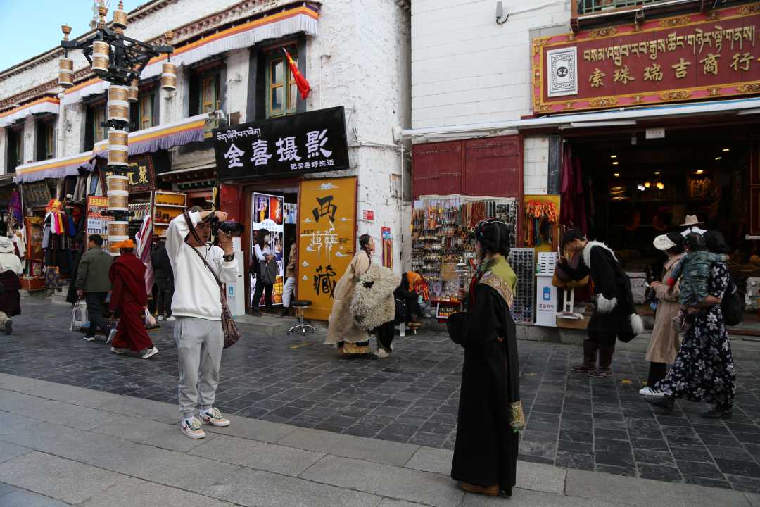 在八廓街拍攝藏裝寫真的游客。賀建明攝