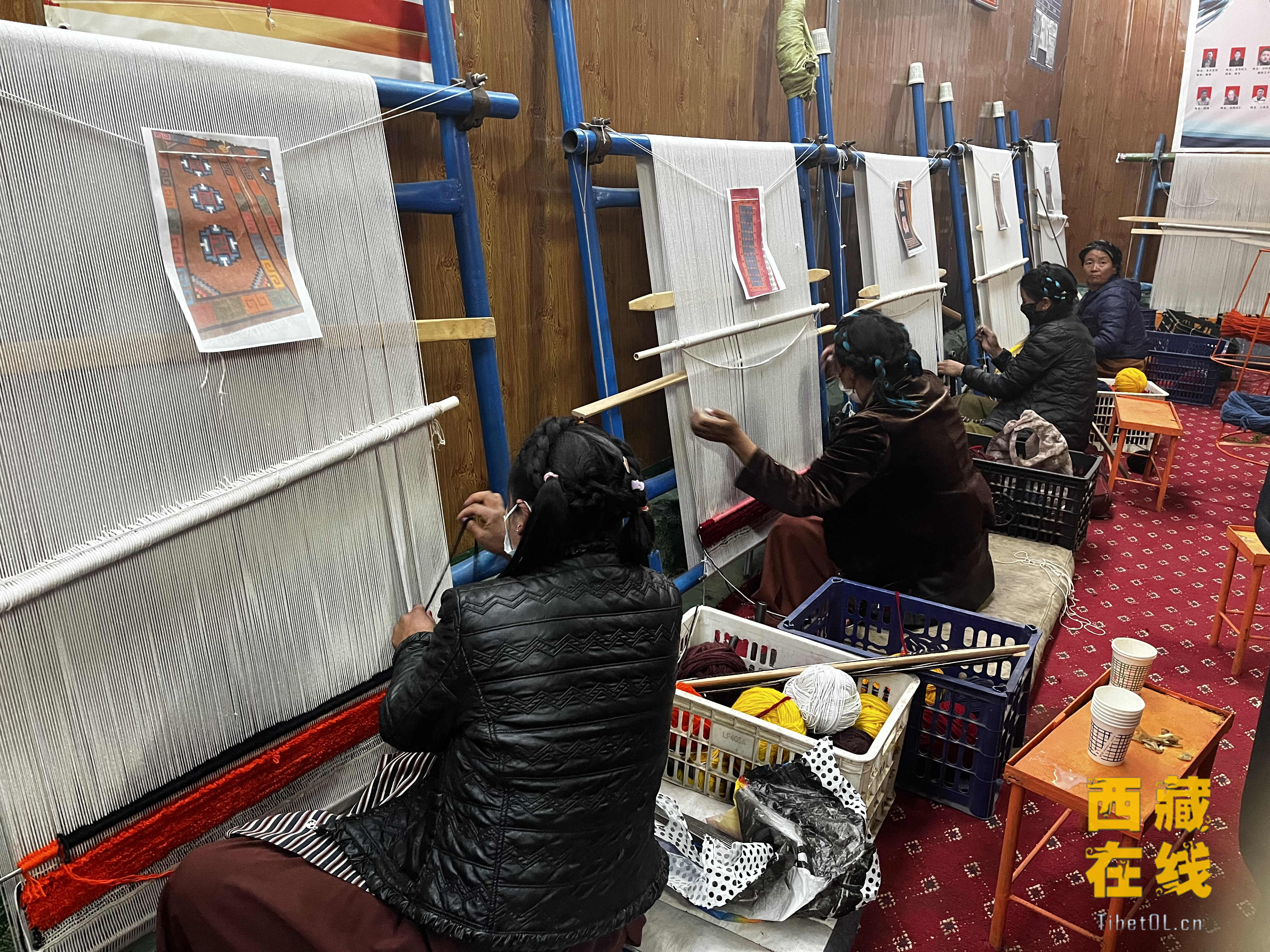走進(jìn)日喀則市南木林縣達(dá)那鄉(xiāng)孔朗朗巴紡織農(nóng)民專業(yè)合作社內(nèi),學(xué)員們正在有條不紊地制作西藏傳統(tǒng)藏毯。索朗作為這家合作社的負(fù)責(zé)人介紹到,2019年5月他與當(dāng)?shù)?0戶家庭合資成立了該合作社,主要經(jīng)營(yíng)氆氌、邦典、藏式毛毯、藏式被子、藏式卡墊等編織品的加工和銷售,每年收入能達(dá)到50萬(wàn)元。