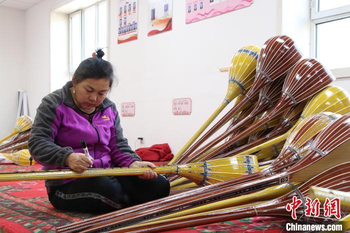 近日,在阿克蘇地區(qū)新和縣依其艾日克鎮(zhèn)加依村樂器產(chǎn)業(yè)園內,工人們分工明確,忙碌地生產(chǎn)樂器的各個配件。茍繼鵬 攝