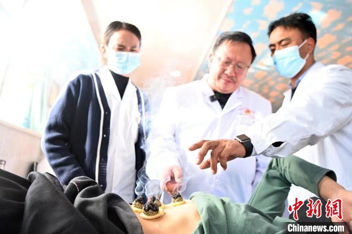 11月初,甘肅甘南州碌曲縣藏醫(yī)院醫(yī)護人員通過“霍爾麥”療法為患者治療。九美旦增 攝