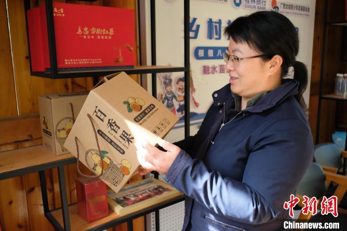 圖為楊寧端詳著為百香果產(chǎn)品設(shè)計(jì)的包裝。劉俊聰 攝