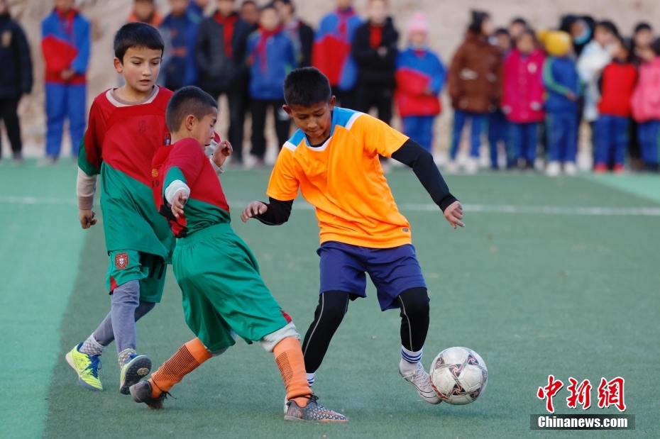 新疆很多人喜愛足球。在新疆阿圖什,人們更是驕傲于當(dāng)?shù)貪夂竦淖闱蚍諊土己玫娜罕娀A(chǔ)。13日,中新社記者來到阿圖什市上阿圖什鎮(zhèn)依克薩克小學(xué),一場鄉(xiāng)村小學(xué)間的足球賽正激烈進(jìn)行。中新社記者 韓海丹 攝