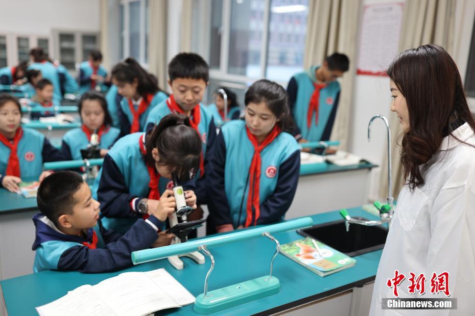 12月13日,新疆維吾爾自治區(qū)哈密市豫哈實(shí)驗(yàn)學(xué)校,學(xué)生們在上生物課。中新社記者 楊可佳 攝
