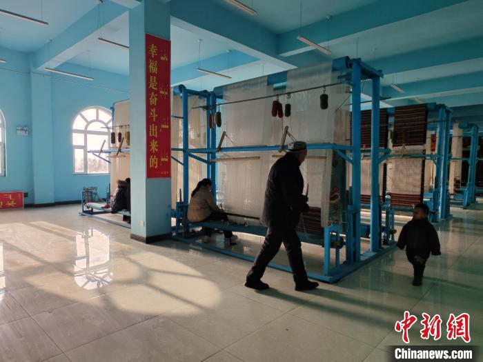 12月16日,庫爾班民俗博物館的制作生產(chǎn)車間,阿衣沙汗·阿不力米在織布機(jī)上勞作。中新社記者 楊可佳 攝