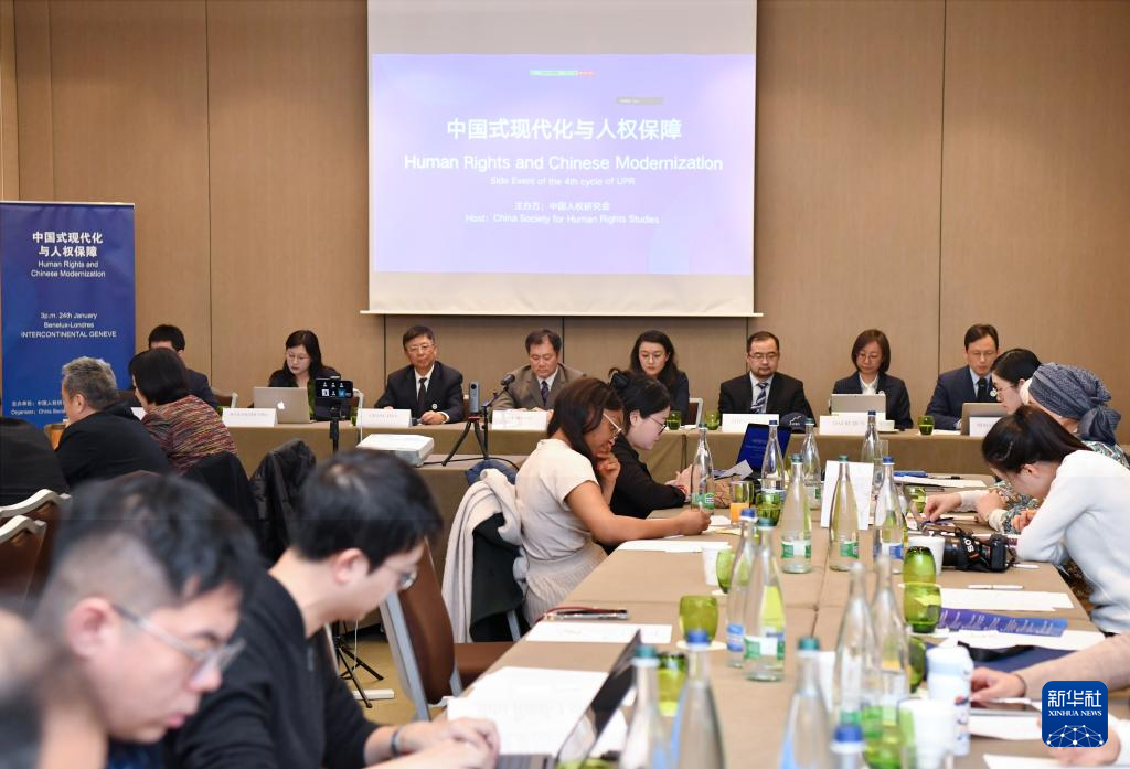 在聯合國人權理事會對中國啟動第四輪國別人權審議之際,由中國人權研究會主辦的“中國式現代化與人權保障”邊會24日在瑞士日內瓦舉行。來自國內外的專家學者、社會組織代表和媒體界代表50余人與會。會議通過網絡平臺向全球直播。