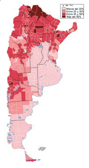 地圖1. 阿根廷農(nóng)村貧困人口的百分比。