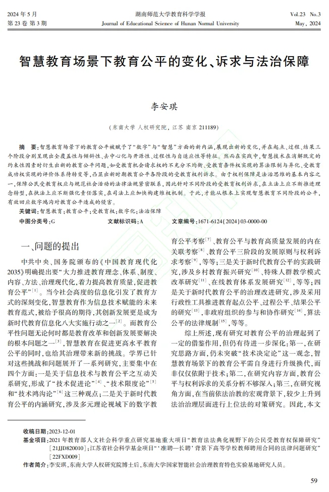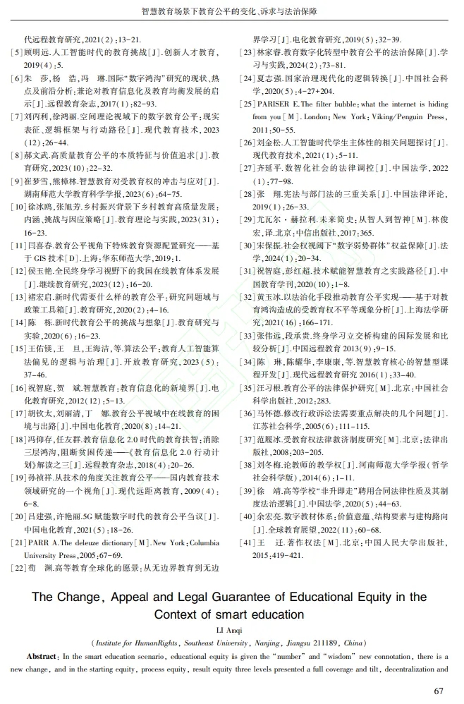 李安琪:智慧教育場景下教育公平的變化、訴求與法治保障