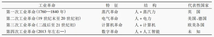 表1 四次工業(yè)革命情況簡表