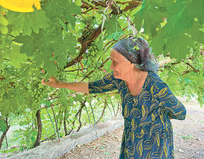 海力其汗·玉素甫正在查看葡萄生長情況。阿地蘭攝