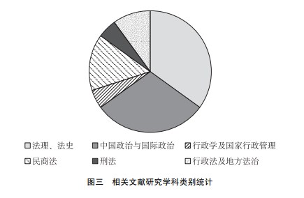 第四,研究學科較為集中(具體見圖三)。以188篇文獻中下載量排名前20的文獻為統(tǒng)計樣本,其中13篇文獻集中在法學領域,主要包括法理法史、民商法、行政法等學科,如王利明、朱虎在《中國人民大學學報》上發(fā)表的《論基本民事權利保護與人權保障的關系》一文,就是從民商法的角度對人權保障問題進行的研究。剩余7篇主要集中在政治學領域,包括中國政治與國際政治、行政學及國際行政管理等,如柳華文在《比較法研究》上發(fā)表的《論當代中國人權觀的核心要義——基于習近平關于人權系列論述的解讀》,就是基于政治學對習近平關于尊重和保障人權重要論述的核心要義的解讀。這種研究學科的分布樣態(tài)與人權的概念和屬性是密切相關的,人權具有政治性,同時又以法治為支撐點。由于其研究學科較為集中,開展相關研究的作者也較為集中,他們主要是蔣建國、張文顯、魯廣錦、汪習根、張永和、韓大元、莫紀宏、毛俊響等。