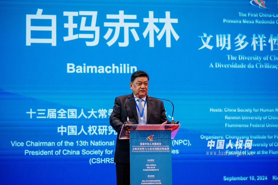 十三屆全國(guó)人大常委會(huì)副委員長(zhǎng),中國(guó)人權(quán)研究會(huì)會(huì)長(zhǎng)白瑪赤林發(fā)表致辭指出,在人類文明交融涵養(yǎng)和構(gòu)建中拉命運(yùn)共同體倡議引領(lǐng)下,中拉人權(quán)理念更加契合,所走的人權(quán)道路各具特色。白瑪赤林建議,中國(guó)與拉美國(guó)家堅(jiān)持共同的安全觀,持續(xù)塑造和平的人權(quán)環(huán)境;堅(jiān)持共享的發(fā)展觀,合力探索普惠的人權(quán)道路;堅(jiān)持共生的文明觀,尊重倡導(dǎo)多元的人權(quán)理念,積極通過(guò)對(duì)話凝聚人權(quán)共識(shí),共同應(yīng)對(duì)人權(quán)挑戰(zhàn),不斷推動(dòng)人權(quán)文明發(fā)展進(jìn)步。