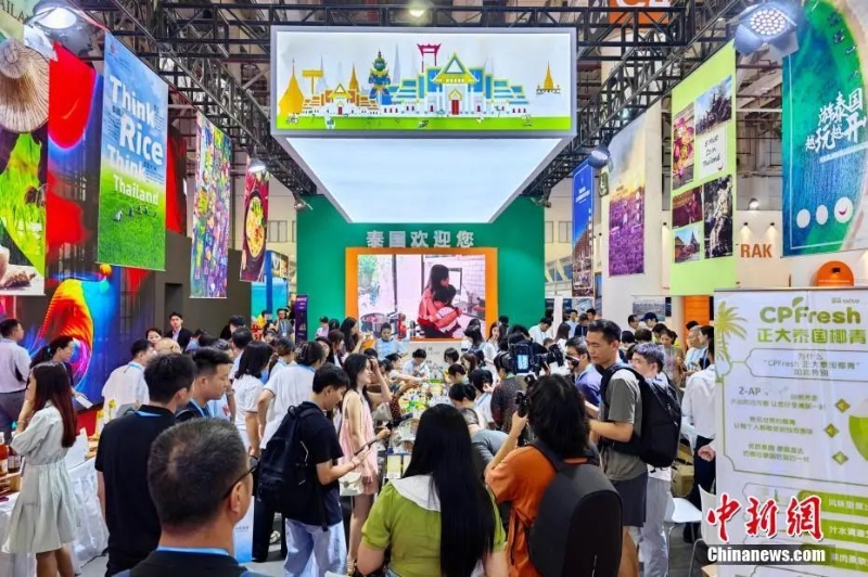 資料圖:9月8日,第二十四屆中國(guó)國(guó)際投資貿(mào)易洽談會(huì)在福建省廈門(mén)市開(kāi)幕,吸引了119個(gè)國(guó)家和地區(qū)參會(huì)參展,其中共建“一帶一路”國(guó)家約占八成。圖為泰國(guó)館人氣爆棚。中新社記者 王東明 攝