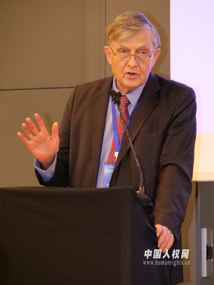 捷克左翼研究所學(xué)術(shù)委員會(huì)主席揚(yáng)·坎貝爾作題為《從人權(quán)到生命安全權(quán)》的主旨發(fā)言。