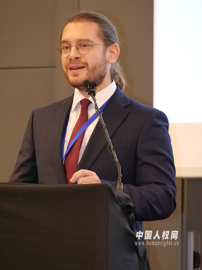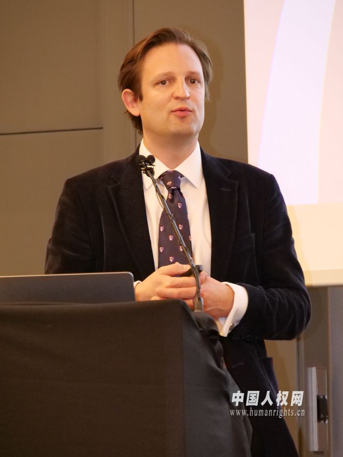 瑞典 "一帶一路" 研究所所長(zhǎng)史蒂芬·布勞爾作題為《從加深對(duì)當(dāng)今人權(quán)問題的認(rèn)識(shí)看中歐之間的歷史哲學(xué)橋梁》的主旨發(fā)言。
