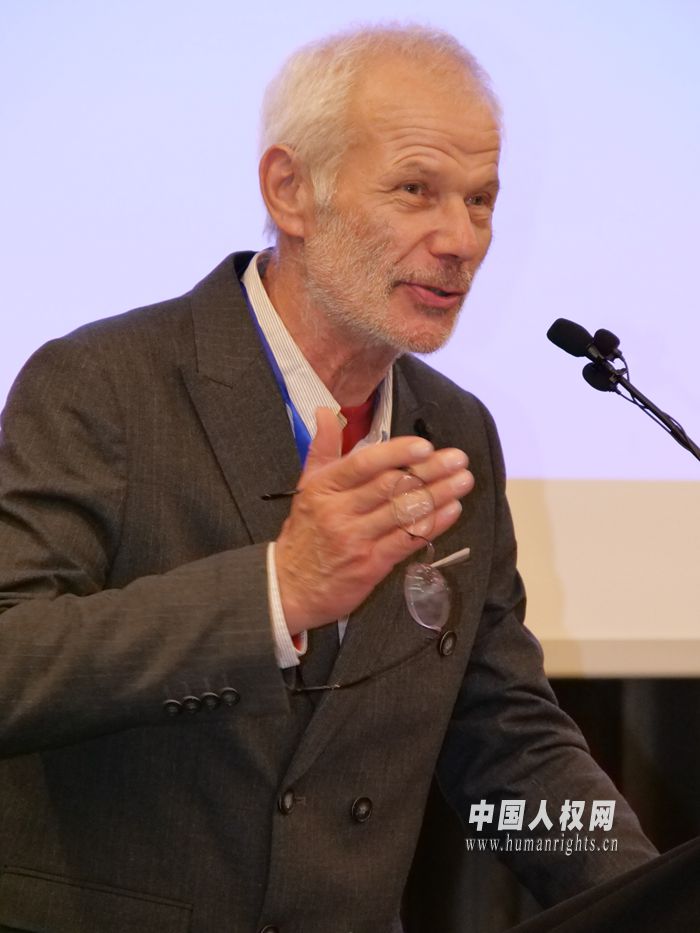 德國聯(lián)邦州黑森州歐洲與國際事務(wù)部門前負(fù)責(zé)人博喜文作題為《現(xiàn)代人類命運(yùn)共同體中的人權(quán)問題》的主旨發(fā)言。