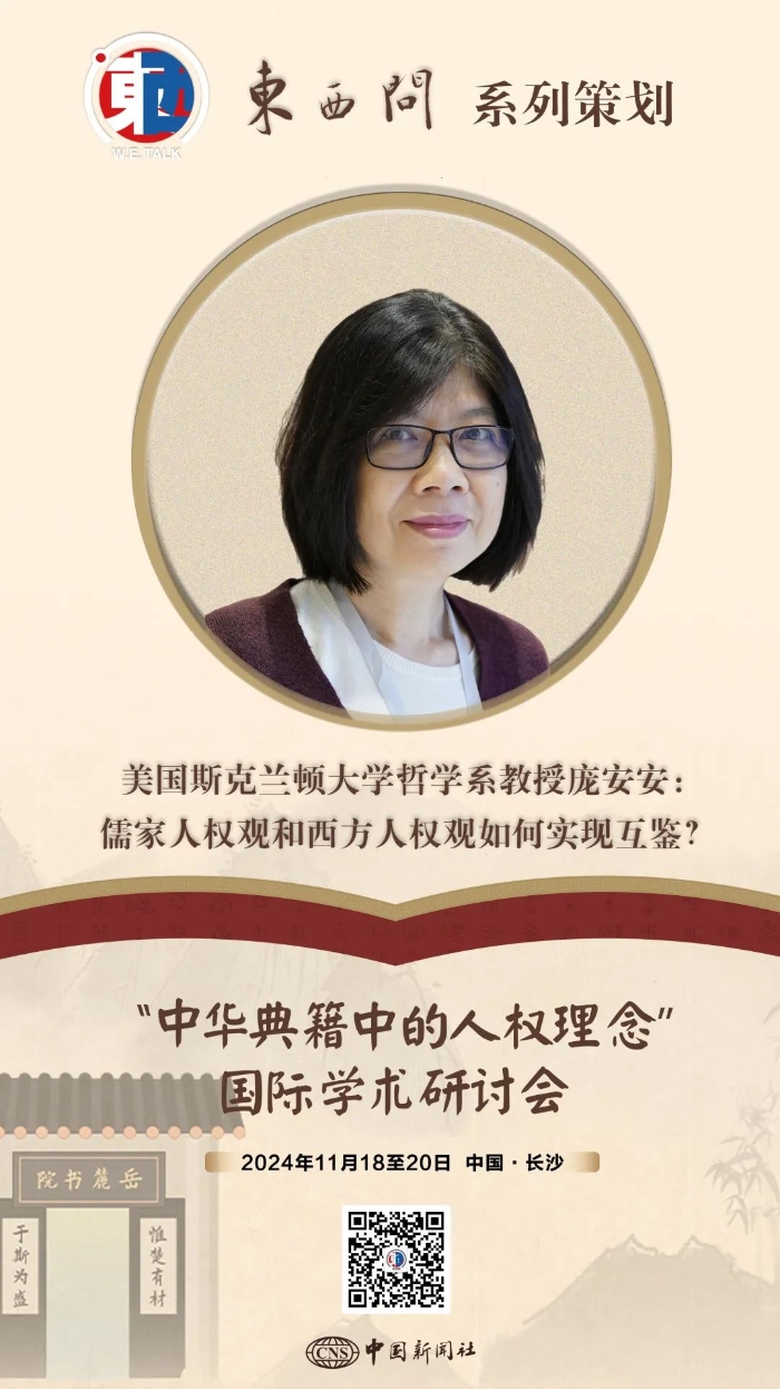 中國哲學(xué)有何獨特性?儒家傳統(tǒng)中能否開辟出現(xiàn)代男女平等之道?儒家思想中蘊含哪些人權(quán)觀?儒家人權(quán)觀和西方人權(quán)觀如何實現(xiàn)互鑒?世界各國可以在人權(quán)領(lǐng)域展開哪些合作?美國賓夕法尼亞州斯克蘭頓大學(xué)哲學(xué)系教授龐安安近日接受中新社“東西問”專訪,就上述問題展開討論。