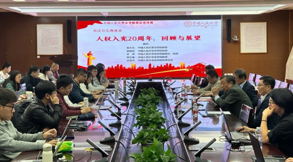 2024年12月4日晚,由中國人民大學法學院、中國人民大學公法研究中心主辦,中國人民大學法學院團委承辦,中國人民大學法學院研究生會協(xié)辦的憲法宣傳周系列活動之“人權(quán)入憲20周年:回顧與展望”主題座談會在明德法學樓601會議室成功舉行。