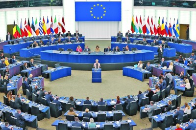 11月27日,在法國斯特拉斯堡,馮德萊恩(中)在歐洲議會會議上講話。新華社發(fā)