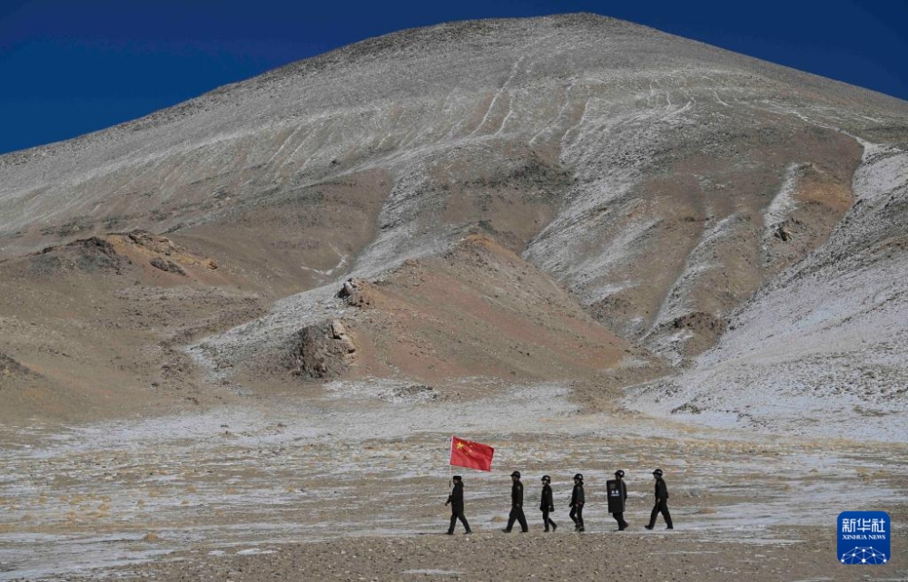 多來提曼·開米克(前)與護邊員一起巡邊(2025年1月9日攝)。