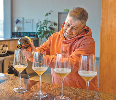 “除了葡萄酒外,我們還不斷拓展釀酒種類(lèi)。這兩款酒是由我們員工自家種植的大米和蘋(píng)果釀制的。”吉利拿出兩瓶酒自豪地介紹道,“它們?cè)谑袌?chǎng)上很受歡迎,農(nóng)產(chǎn)品附加值提高了,員工們的收入更多了,真正實(shí)現(xiàn)了產(chǎn)業(yè)與生活的緊密結(jié)合。”