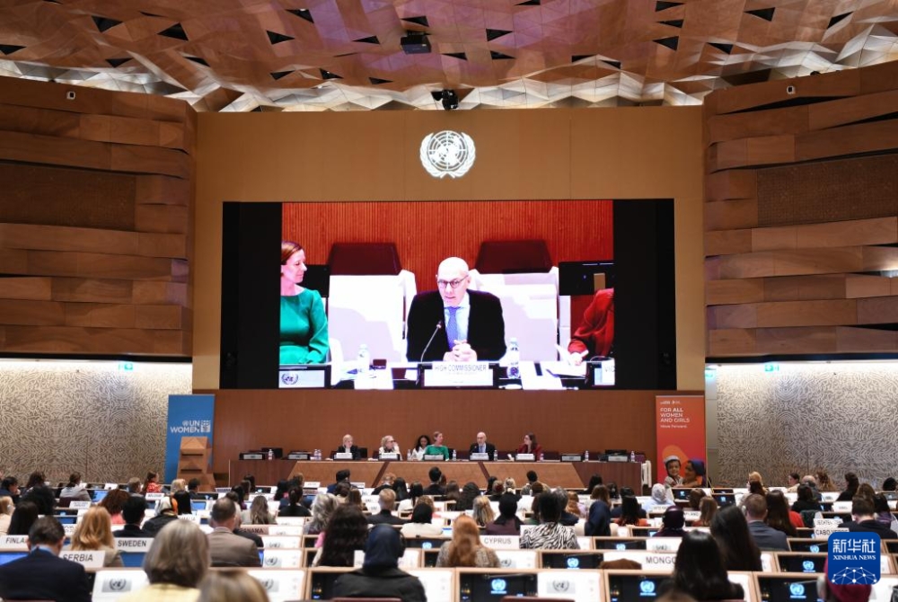 3月7日,在瑞士日內(nèi)瓦萬國宮,聯(lián)合國人權事務高級專員圖爾克在聯(lián)合國國際勞動婦女節(jié)紀念活動暨北京世界婦女大會三十周年對話會上講話。新華社記者 連漪 攝