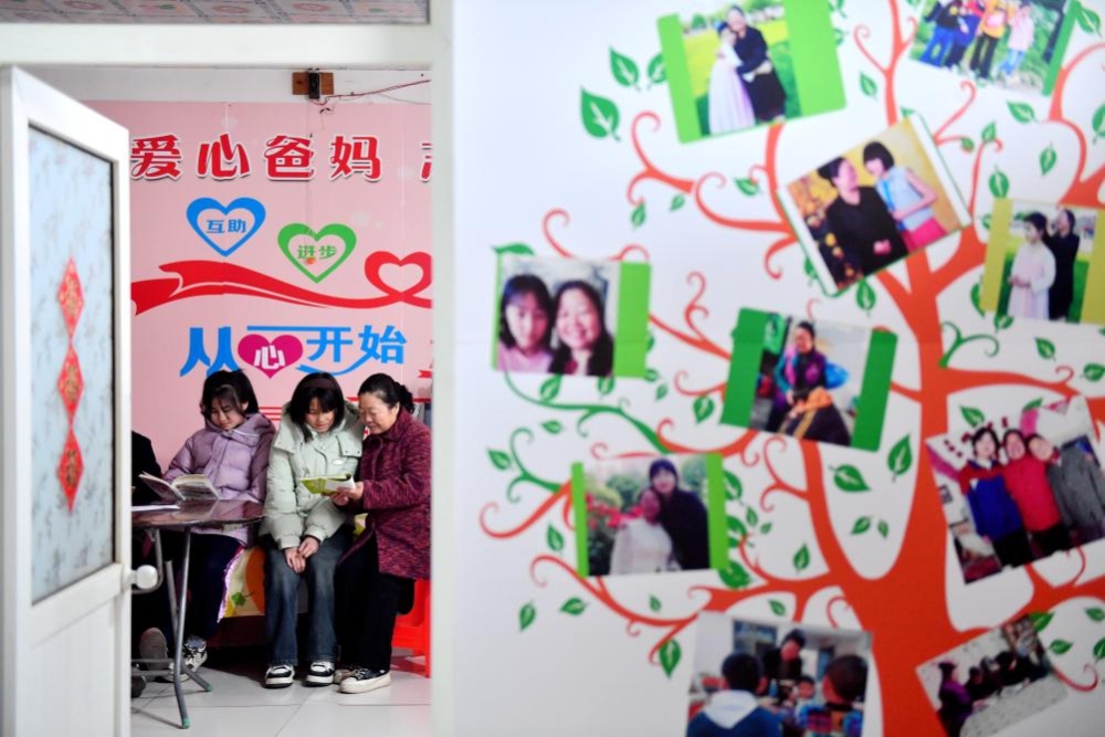 陳玉文和孩子在滏陽營村“愛心小屋”。新華社記者 王曉 攝