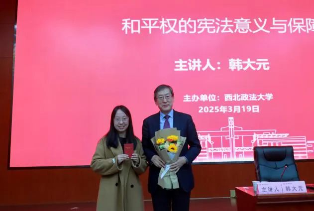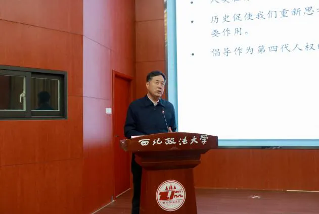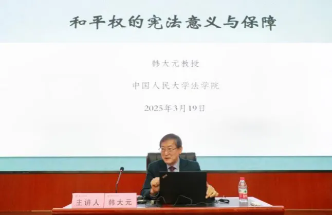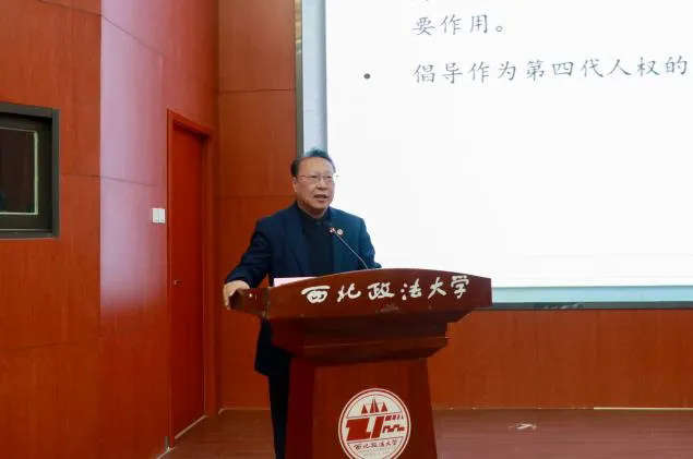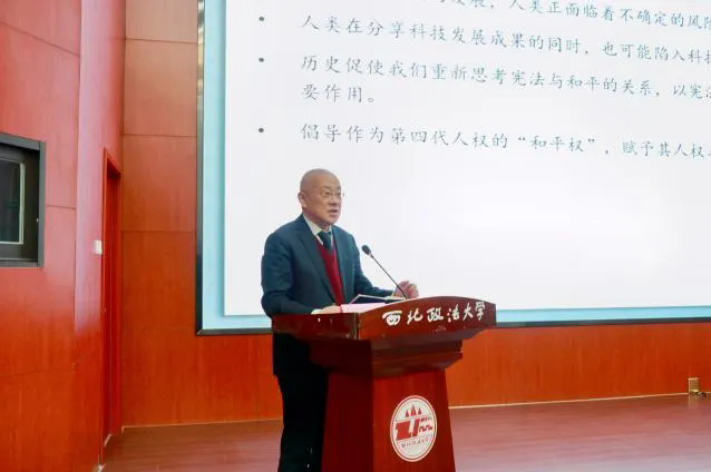 3月19日上午9:30,由西北政法大學(xué)研究生院主辦的“習(xí)近平法治思想大講堂”第七講在西北政法大學(xué)雁塔校區(qū)人權(quán)研究中心報告廳順利舉行。中國法學(xué)會憲法學(xué)研究會名譽(yù)會長、中國法學(xué)會法學(xué)教育研究會常務(wù)副會長、中國人民大學(xué)法學(xué)院教授韓大元做題為《和平權(quán)的憲法意義與保障》的講座,由西北政法大學(xué)副校長常安主持,王瀚教授、王周戶教授、王健教授與談。