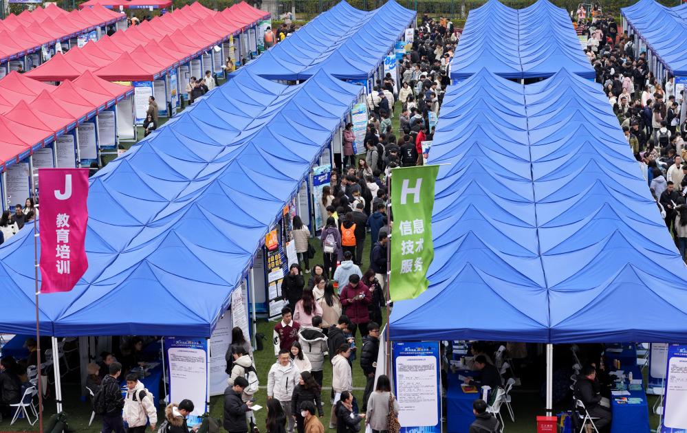 2025上海高校畢業(yè)生就業(yè)實(shí)習(xí)招聘會(huì)在上海工程技術(shù)大學(xué)舉行。新華社記者劉穎 攝