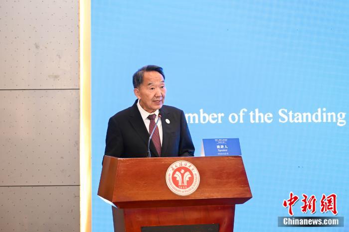 圖為全國政協(xié)常委、民族和宗教委員會副主任,中國人權(quán)研究會常務(wù)副會長蔣建國在論壇開幕式上致辭。 中新社記者 何蓬磊 攝