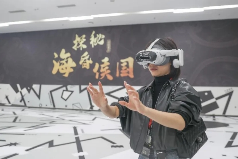 2025年4月2日,江西南昌,市民通過佩戴VR設備體驗“探秘?;韬顕?rdquo;數字沉浸特展。中新社記者 劉力鑫 攝