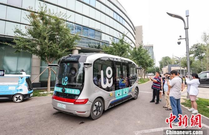 2024年7月11日,北京亦莊自動駕駛示范區(qū)內(nèi),民眾參觀一輛自動駕駛小巴。中新社記者 賈天勇 攝