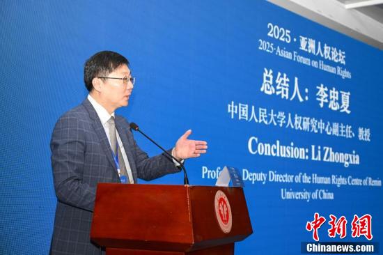 中國人民大學(xué)人權(quán)研究中心副主任、教授李忠夏在閉幕式上作總結(jié)發(fā)言。中新社記者 何蓬磊 攝
