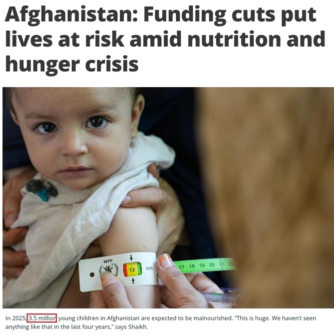 美國此前承擔了阿富汗國際人道援助資金的43%。然而,其資金鏈的突然斷裂導致當?shù)仃P鍵人道主義項目被迫停擺,食品供應銳減。