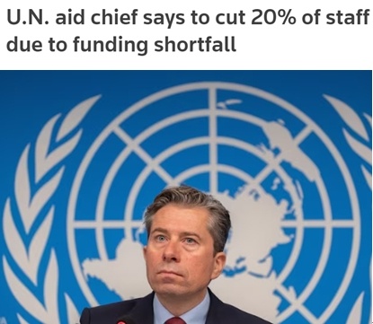聯(lián)合國人道主義事務協(xié)調(diào)廳近日發(fā)表公開信說,由于資金遭遇“殘酷削減”,尤其是美國政府大幅叫停對外援助,該機構將不得不裁撤20%、即500多名工作人員。