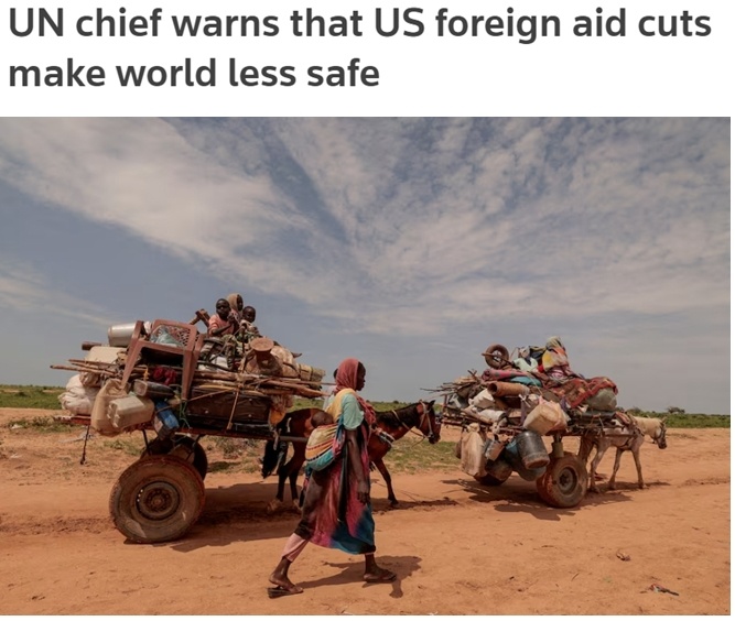 聯(lián)合國秘書長古特雷斯此前曾表示,美國大幅削減對外援助無異于一場人為制造的“人道主義地震”,將對世界上最弱勢群體造成嚴重傷害,不僅讓世界更不健康、更不安全,也有損美國自身利益。