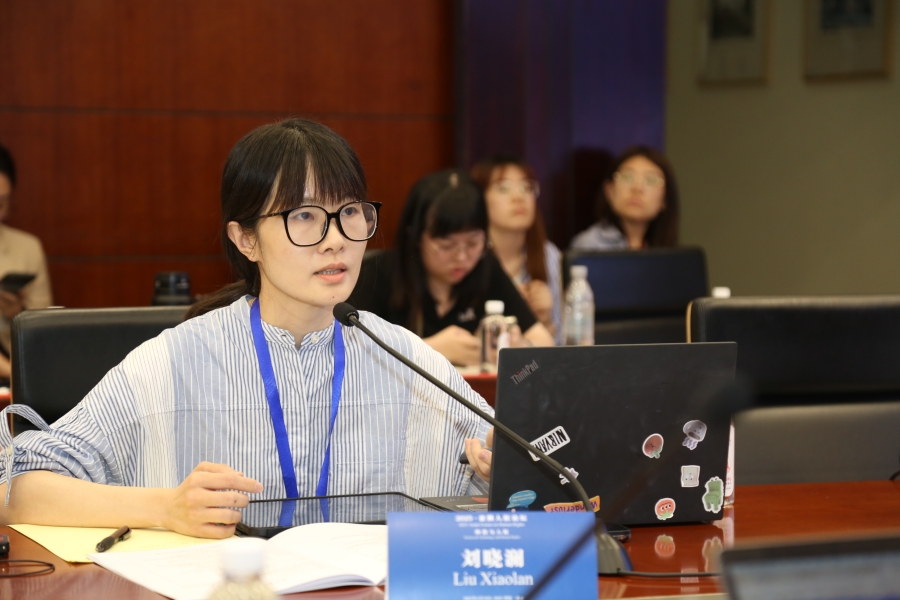 圖為中國(guó)人民公安大學(xué)法理學(xué)博士研究生劉曉瀾作題為《人工智能時(shí)代的公平與正義:亞洲發(fā)展權(quán)保障的挑戰(zhàn)與路徑》的發(fā)言。圖片來(lái)源:西南政法大學(xué)人權(quán)研究院