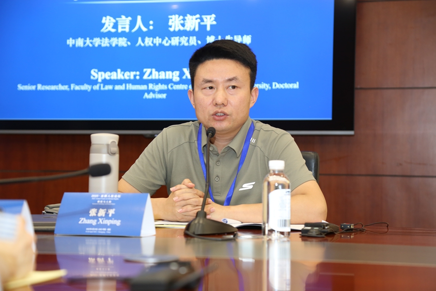 圖為中南大學(xué)法學(xué)院、人權(quán)中心研究員、博士生導(dǎo)師張新平作題為《數(shù)智時(shí)代的數(shù)據(jù)可攜帶權(quán)研究》的發(fā)言。圖片來(lái)源:西南政法大學(xué)人權(quán)研究院