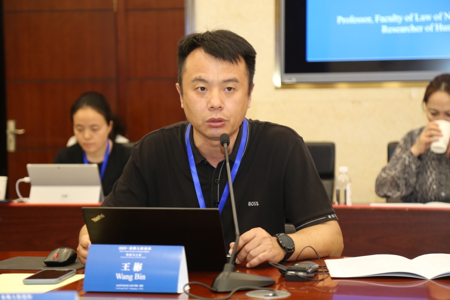 圖為南開(kāi)大學(xué)法學(xué)院教授、博士生導(dǎo)師,阿姆斯特丹大學(xué)訪問(wèn)學(xué)者,南開(kāi)大學(xué)人權(quán)研究中心研究員王彬作題為《生成式人工智能的人權(quán)風(fēng)險(xiǎn)及其法律治理》的發(fā)言。圖片來(lái)源:西南政法大學(xué)人權(quán)研究院