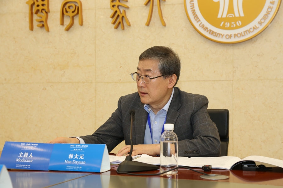 圖為中國(guó)人民大學(xué)法學(xué)院教授、中國(guó)人民大學(xué)人權(quán)研究中心主任韓大元主持“平行會(huì)場(chǎng)二:科技進(jìn)步與亞洲新興人權(quán)問(wèn)題”。圖片來(lái)源:西南政法大學(xué)人權(quán)研究院