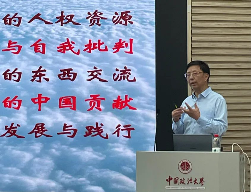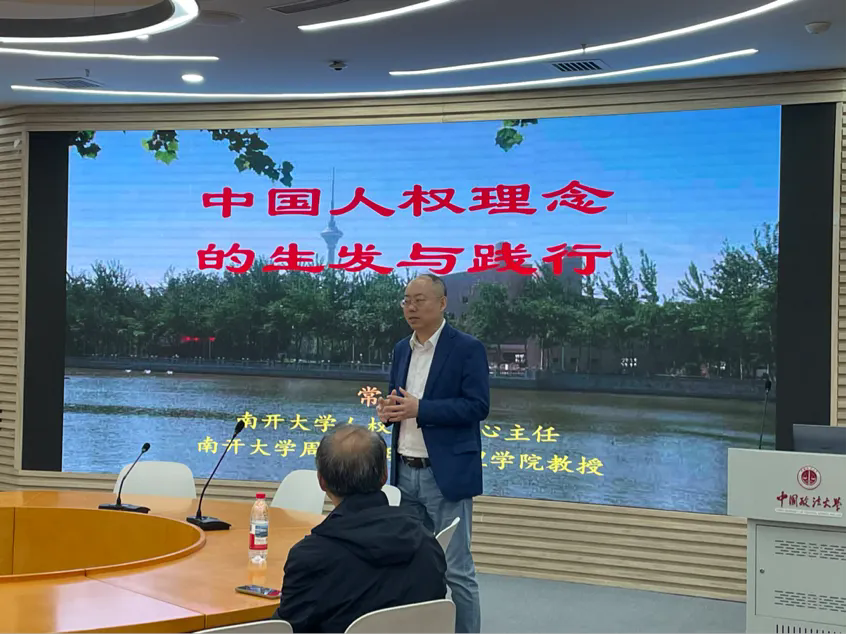 常健從五個方面深入剖析了中國人權(quán)理念的發(fā)展歷程。首先從中國優(yōu)秀傳統(tǒng)文化中的人權(quán)資源切入,闡述了“以人為貴”“以民為本”等理念在歷史長河中的重要意義,它們不僅為現(xiàn)代人權(quán)觀念奠定了道德和思想基礎(chǔ),還蘊含著豐富的人文關(guān)懷與社會治理智慧。其次在近代中國文化的反思與自我批判方面,他介紹了黃宗羲、顧炎武等思想家對封建君主專制的批判,以及對傳統(tǒng)理欲觀、平等和人的自由能動性的思考,展現(xiàn)了中國思想界在時代變革中的覺醒。然后講解了近代人權(quán)理念形成過程中的東西交流,涉及16至18世紀的“東學(xué)西漸”和19至20世紀的“西學(xué)東漸”。隨后探討了國際人權(quán)標準建設(shè)中的中國貢獻,特別是張彭春先生的杰出貢獻。最后向在場師生闡述當代中國人權(quán)觀的實踐導(dǎo)向,以及倡導(dǎo)構(gòu)建人類命運共同體的重大意義。