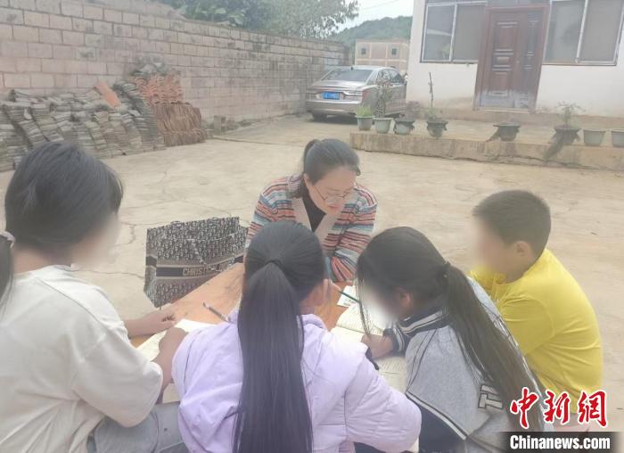 楊云梅為留守兒童輔導作業(yè)。受訪者 供圖