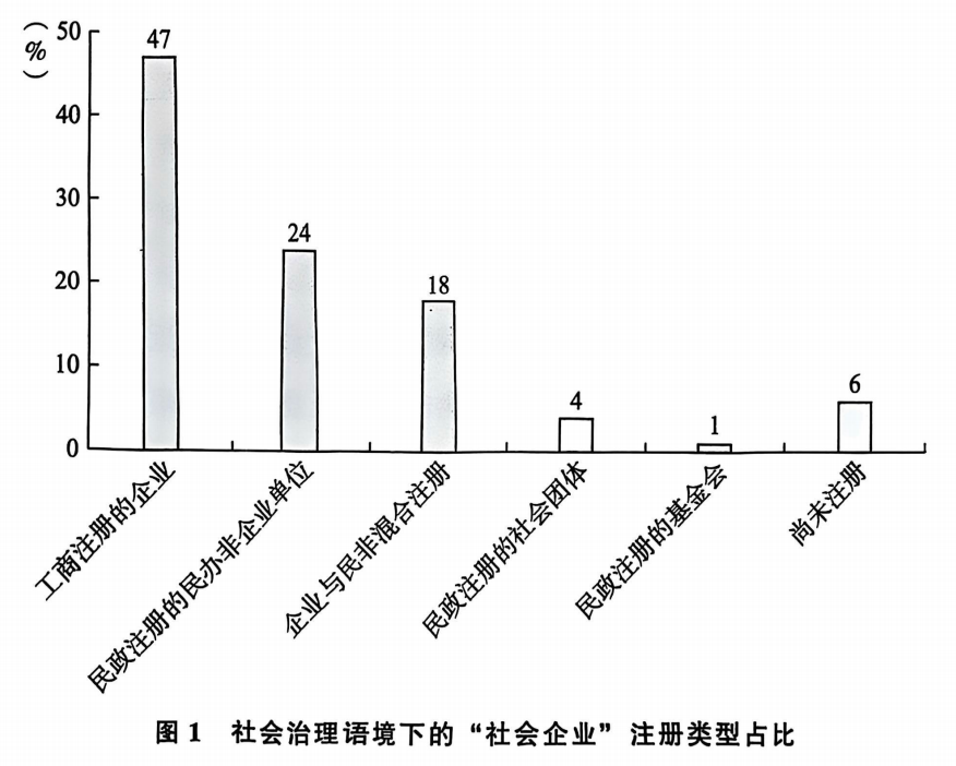 如圖1所示,47%的社會企業(yè)采取工商注冊的方式,29%的社會企業(yè)采取民政注冊的方式(包括民政注冊的民辦非企業(yè)單位、社會團(tuán)體和基金會)。此外,有18%的社會企業(yè)采取的是企業(yè)與民辦非企業(yè)單位混合注冊形式,另外還有6%的尚未進(jìn)行注冊。很顯然,調(diào)研報告所展示的社會企業(yè)組織類型劃分是以注冊方式以及營利法人分類為標(biāo)準(zhǔn)的。但這一分類標(biāo)準(zhǔn)能否從社會學(xué)范疇完全照搬到法學(xué)領(lǐng)域呢?答案無疑是否定的。如若嚴(yán)格遵守規(guī)范分析法,中國當(dāng)然沒有完全意義上的社會企業(yè),但有三類組織類型因較為靠近前述社會企業(yè)概念以及構(gòu)成要素,被不少學(xué)者認(rèn)可為“本土化的社會企業(yè)”。為更加直觀感受到社會學(xué)與法學(xué)研究視角的差異,本文仍借鑒了圖1中的類型占比,按照占比由大至小的順序論述。在進(jìn)入本論之前,首先需要說明占比達(dá)18%的企業(yè)與民非混合注冊類型,這類組織是我國社會服務(wù)機(jī)構(gòu)“雙重管理”登記審批制度高門檻以及資本逐利逆向選擇疊加作用的結(jié)果,登記注冊的復(fù)合性并不意味著我國社會企業(yè)具備了超出現(xiàn)有法律框架的新型形態(tài)。至于商業(yè)企業(yè)試圖通過“社會企業(yè)”注冊登記進(jìn)行非法關(guān)聯(lián)交易以實(shí)現(xiàn)資產(chǎn)轉(zhuǎn)移、規(guī)避稅負(fù)等擾亂商事主體市場經(jīng)營秩序的行為,則系普通稅收管理與市場監(jiān)管范疇,與社會企業(yè)的法律形態(tài)無虞。