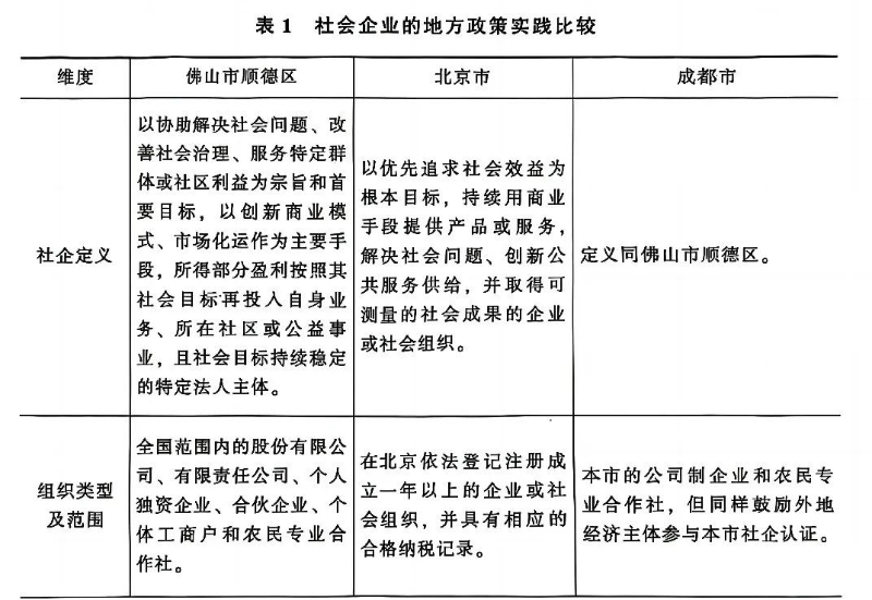 (一)社會企業(yè)地方政策的實(shí)踐比較與經(jīng)驗(yàn)總結(jié)