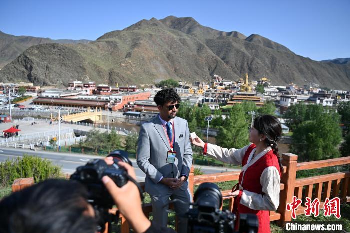 6月10日,甘肅甘南藏族自治州夏河縣,中外嘉賓走訪“世界藏學(xué)府”拉卜楞寺。中新社記者 九美旦增 攝