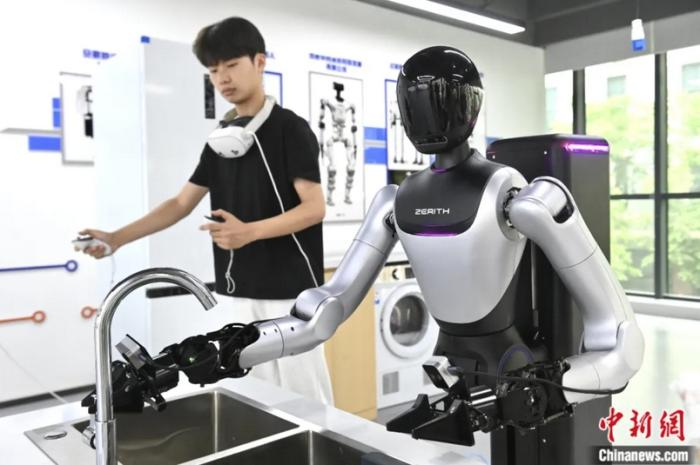 2025年6月19日,在合肥市具身智能機(jī)器人數(shù)據(jù)采集預(yù)訓(xùn)練場(chǎng)內(nèi),人形機(jī)器人正在進(jìn)行“崗前實(shí)訓(xùn)”。圖為工作人員正在訓(xùn)練人形機(jī)器人。 中新社記者 韓蘇原 攝