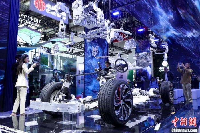 2024年11月26日,主題為“鏈接世界,共創(chuàng)未來(lái)”的第二屆中國(guó)國(guó)際供應(yīng)鏈促進(jìn)博覽會(huì)在北京開(kāi)幕。圖為先進(jìn)制造鏈展館,嘉賓在中信集團(tuán)展廳參觀汽車(chē)零部件一體化方案。中新社記者 張祥毅 攝