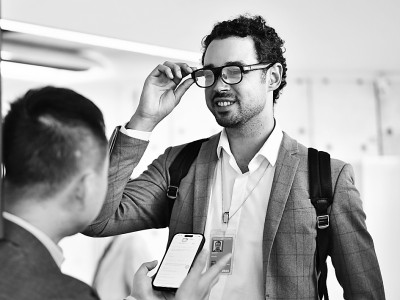6月16日,在瑞士日內瓦萬國宮,嘉賓在“人人享有無障礙:構建包容未來”主題展覽上試用翻譯眼鏡。新華社發(fā)