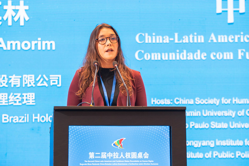 “第二屆中拉人權(quán)圓桌會(huì)”25日在巴西圣保羅舉辦。圖為中國(guó)國(guó)家電網(wǎng)巴西控股有限公司環(huán)境、社會(huì)和治理經(jīng)理安妮·路易絲·德·阿莫林在開(kāi)幕式上致辭。主辦方供圖