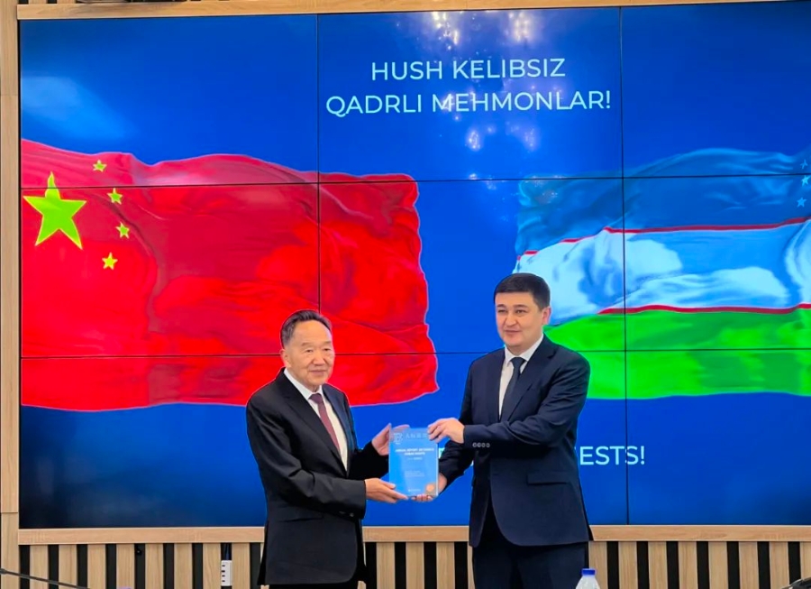 蔣建國向?yàn)跛痉ú扛辈块L(zhǎng)舍爾佐德·拉比耶夫贈(zèng)送2024年度中國人權(quán)事業(yè)發(fā)展報(bào)告(人權(quán)藍(lán)皮書)